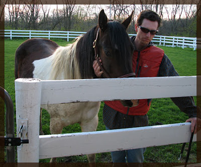 After the ride we went back outside to give him some grain and let him graze an little more. I snapped a shot of him and Brian from the other side of the fence.