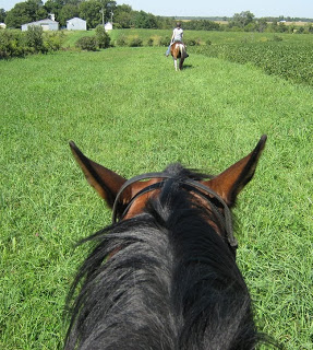 I’m trying to make these rides fun and easy. Bear is a little out of shape. So for now it’s lots of walking up and down hills and a little trotting thrown in. Yesterday’s ride was 45 minutes, and today we went for an hour. It will be fun to watch his physical progression grow along with our relationship. Hopefully in the not too distant future we’ll be able to get some long loping rides on those lovely strips of grass.