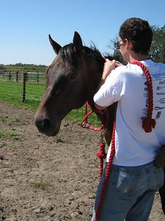 And things were better than good. No one is picking on Bear. In fact, he has a couple of friends in the herd already. But he doesn’t prefer the herd to me. At least not that I can tell. When I walked up to him he kindly let me halter him and lead him out of the huge, green pasture and into the arena.