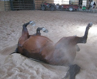 Saturday morning we went for a repeat. And it really was quite a repeat. He was great coming out of the pasture, even more relaxed while tacking up, and better at stopping, standing, and neck reining when I hopped on in the arena. I only rode inside for about 3 minutes this time. We just wanted to make sure that he wasn’t sore or bothered by anything.