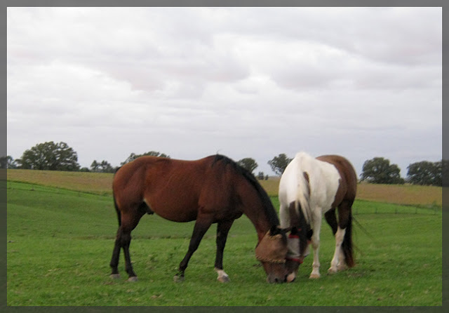 Things have continued to go well in the Bear department. Brian went out and rode him alone on Friday with good results. You can read about that here. We’re going to have to make sure to continue to ride and handle the horses independently of one another, as it would seem and Bear and Steen are getting along just fine. Better than just fine, actually. This is what Brian and I found them doing on Friday evening when we took a break from the barn party we were attending and walked out into the pasture.
