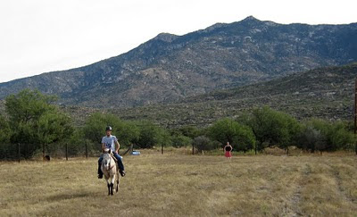 Simon and Jak, with Robin instructing amidst the Catalina Mountains.I’ll have some not-highly-exciting video coming soon, including some bareback trotting.