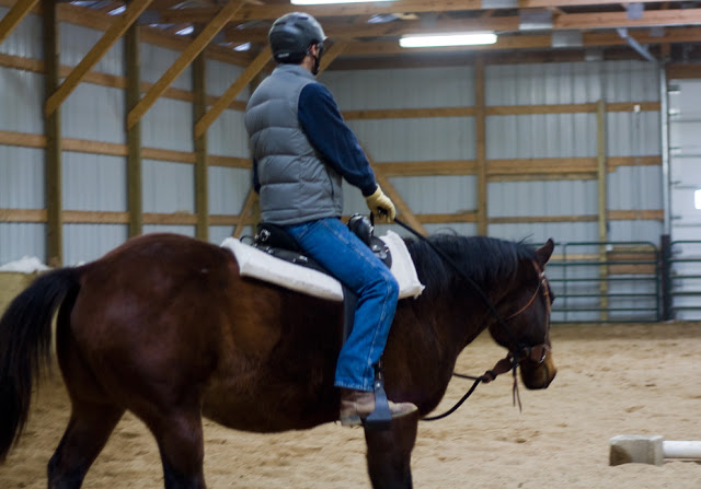After the romp we got down to business. Steen was so great with his groundwork that I decided to keep him inside while Brian rode Bear. He just hung out with me the whole time, for the most part content to stand next to me and get the occasional pet. He only got pushy when I pulled the camera out. He’s turned into such a prima donna.