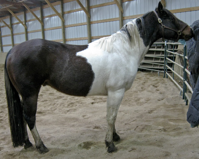 I trimmed his tail and groomed his as best I could given the circumstances, then hopped on bareback indoors. We worked on walking and trotting in a figure eight over a pole on the ground. I kind of wish we had more than one, but this was at least enough to give Steen something to think about. He was not highly energetic, at any rate, which was nice from the perspective of sitting his trot.