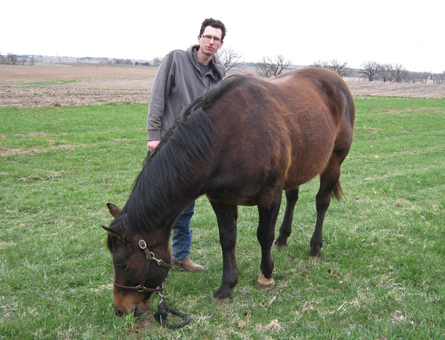 After quite a few weeks of more riding, I took it easy this past week.  The weather was cold and wet, so it made it easy for me to stay home, drink tea, and read books.  Yesterday Bear got some work done on him by the chiropractor.  I was at work so Robin was there to hold him.  He was quite the pill for her, but she made him sorry for his actions with some groundwork and demanding backing to the pasture (yeah, they pretty much walked backwards the whole way to the pasture).