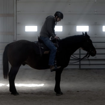 I kept it short and then put Christy up on him. We started with me just leading the two of them around the arena with the mecate.