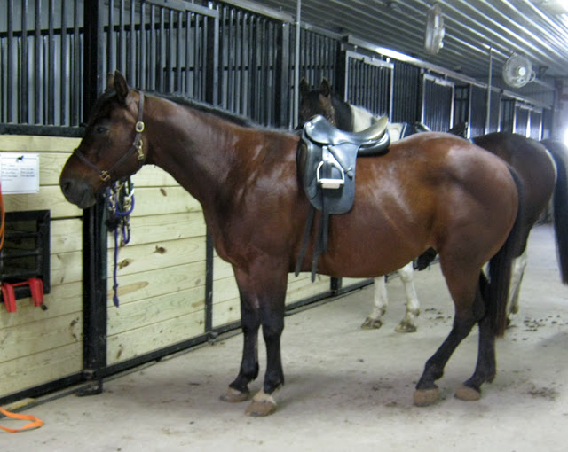 Bear was pretty happy to see me, and he had no problems coming inside for another grooming. He promptly dozed off while I brushed and tacked him. But taking him into the arena did not make him happy. He stopped and balked twice, but I just patiently kept asking him to follow, and finally he resigned himself to another ride.