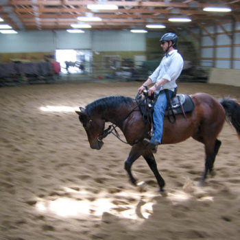 There was a little bit of head tossing when we started the lope, but he quickly settled in and gave me our smoothest lope yet. For the first time I felt very centered and balanced going through the turns. We worked at the left lead for a little while and then moved on to the right.