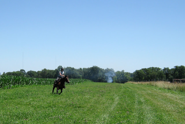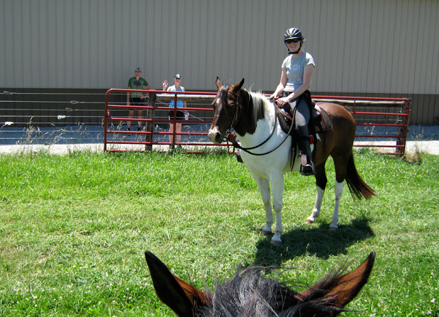 Out on the strip Robin showed them some of the cool groundwork tricks that Steen knows, and I hopped on Bear and showed them all the gaits (well, not the gallop). Thankfully Bear gave me a wonderfully relaxed lope, so that was nice.
