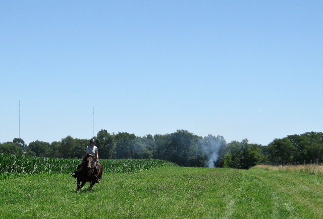Bear has a nice, agile lope, and he proved this to me by loping in very, very small circles. I worked on sitting in a balanced manner and encouraging him to broaden his radius. He did eventually agree to do this and we went nicely for a little while, but it was hot and I didn’t want to push him so I kept it short. Still, it was fun and reminded me that I should really make an effort to ride Bear more often.