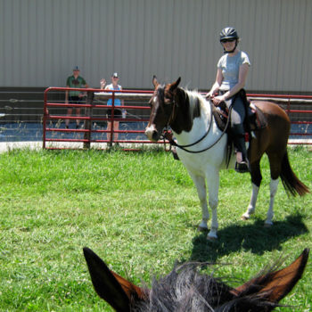 But in the end we couldn’t entice either of our friends to attempt groundwork or climb on for a pony ride. They made their exit as Brian and I mounted up on the strip.