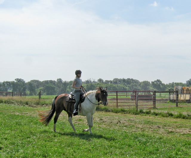 Oh, and the fly-boots.  I think they were good.  He was still wearing them and he did not seem at all bothered by them.  Also, while we were tacking up he only stamped his rear feet once.  That is a huge improvement.  So I put them back on before putting him out in the pasture.  He only gave us a few goofy steps before returning to his normal gait.