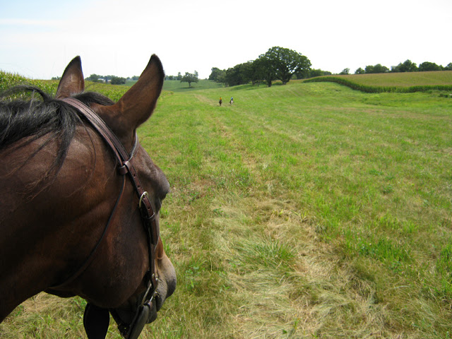 So when the ride got hilly, I held Bear back and just hung out with him for a couple minutes. He wanted to follow the other horses into the steeper hills, but I knew he would have hated actually going up and down those hills.