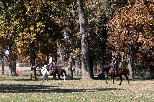 Cathy, Brian and I headed for the barn in the late morning. Cathy has been taking riding lessons for several years now, but had never had a chance to ride Bear. Given Bear’s historical treatment of new people, we weren’t entirely sure what to expect. We rode in the tree pasture since the trees make it kind of fun and varied for the horses, and it is quiet and pretty. I must admit I was pretty surprised at Bear’s stellar behavior. He was awesome for Cathy, quiet but energetic, never getting grouchy like he always has before with people who aren’t Brian. We rode around for a long time. At first we played follow the leader. Steen was in a very relaxed mood and the weather was perfect. It was an utterly pleasant ride.