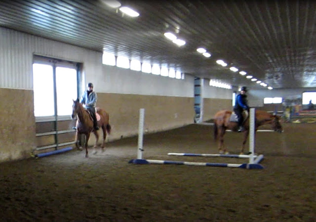 The barn where she rides is huge, with over 100 stalls and more horses kept in pastures. When we arrived things were a bit chaotic. There was a Christmas camp for kids going on, and quite a few people using the indoor arena. We went through the usual adjusting of stirrups and getting acclimated to a different horse and tack, but before long we were all mounted and walking along on the rail.