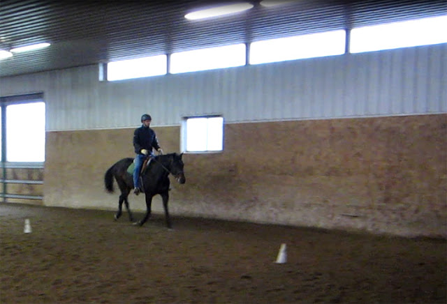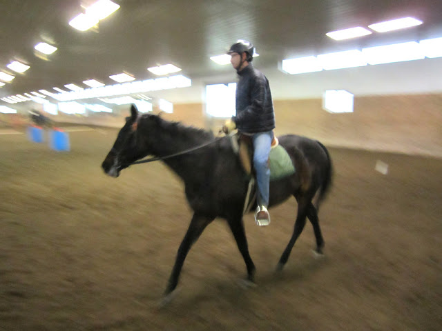 We walked around for just a few minutes, but really that was just for us. The horses were warmed up. So we moved into a posting trot and stayed there for a long time. I have not really been working on my posting since we’ve been indoors (Bear’s trot is so much slower inside), but the loftiness of the Thoroughbred trot and the hunter saddle made posting feel like the most natural thing to do. And it was really a lot of fun.