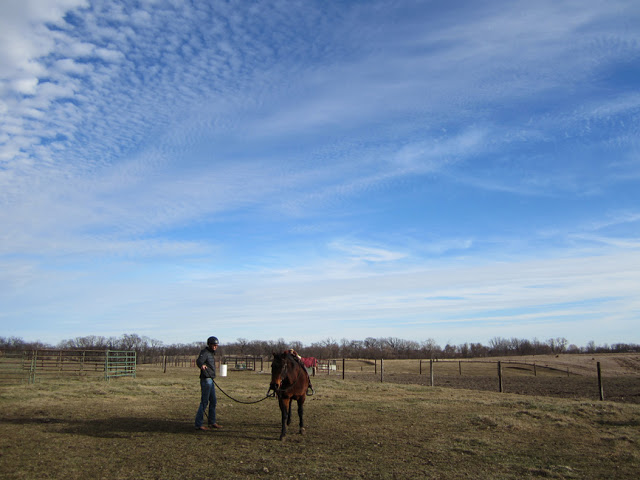 When they were done I took Bear into the arena for a little loping practice.  It was warm and he was a little hot and tired, but he wasn’t sluggish at all.  It also took no effort to keep him going.  He just tipped right over into a super smooth lope in both directions.  It was by far our best indoor lope yet, going both right and left I had no trouble keeping him on the rail.  I think he is getting more and more fit, and we’re also getting more comfortable loping in that space.