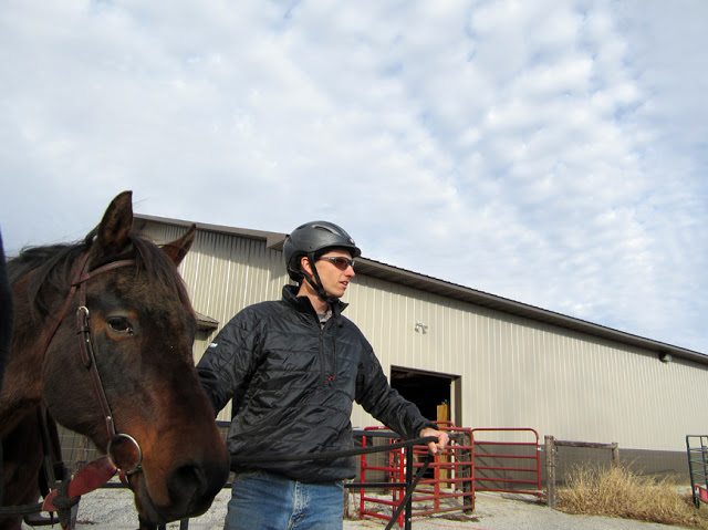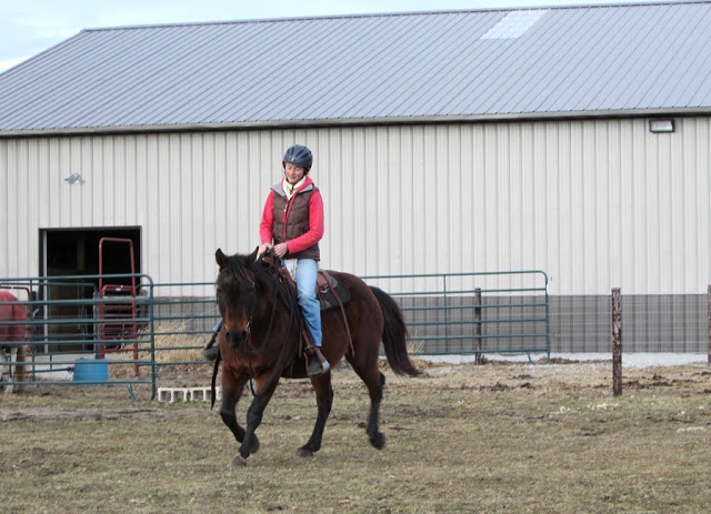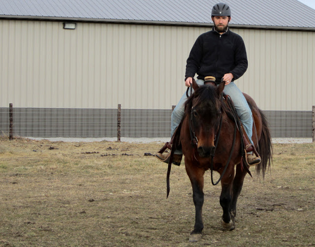 Jesse was having a little more trouble on Steen, but he stuck it out and made some progress.  After that he hopped on Bear for a little bit and they enjoy a little trotting around the arena.