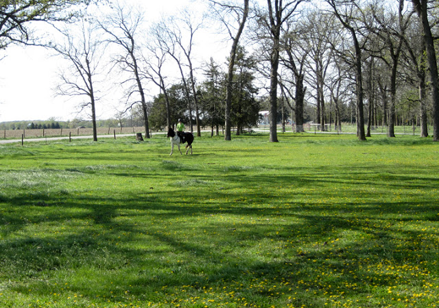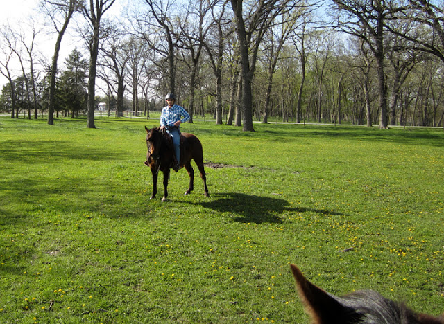Wednesday was windy and a little cool. While tacking we noticed the stall horses were out in the big pasture, so access to the treed lot was clear of both equine obstacles and mud. We hadn’t ridden out there since last fall some time, and Brian and I both wanted to work on slow stuff, so we headed over after we finished tacking and grooming.