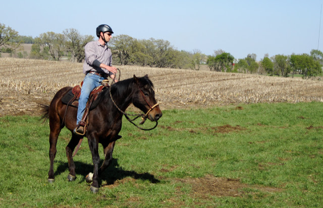 Brian and Bear had a good ride, but it wasn’t quite as magical as yesterday’s. Still, Bear looks pretty darn good in the hackamore. We might have to get him his own.