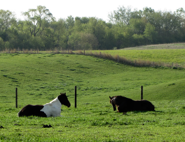 Today there was this mini show for kids at our barn, which meant lots of strange horses hauled in, and lots of strange people hanging around. Brian and I got there early to avoid some of the chaos, and the horses were all dozing in the pasture. I’d never found Steen lying down before.