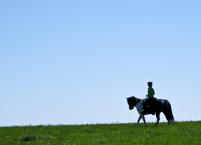 After our work in the salad bowl, Steen was a bit inclined to motor-walk home. I kept him distracted by asking him to leg-yield and collect at intervals, and eventually he calmed down and was content to amble back home next to Bear.