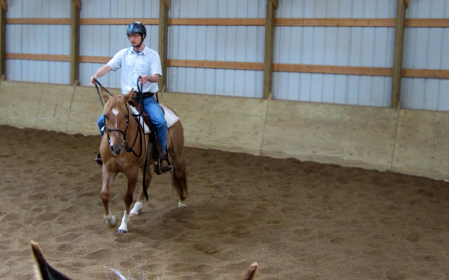 Just like with Robin, he was much, much stiffer going left, so we worked on that direction a little more.  I used consistent pressure with my legs and tried to be as light as possible with the reins, but when he’d stiffen up I’d block and encourage him to bend through the turn.  Once I felt a nice change and he held a bend on his own (even if just for a split second), I rewarded him with the tiny release that came with changing directions.