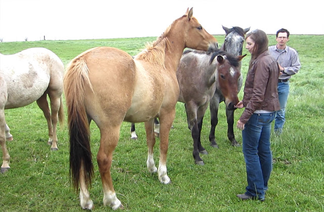 On May 1st we drove south of town to check out a breeder with several young Quarter Horses for sale. We walked out into the pasture and soon we had seven or eight friendly horses a standing in a row trying to say hi.