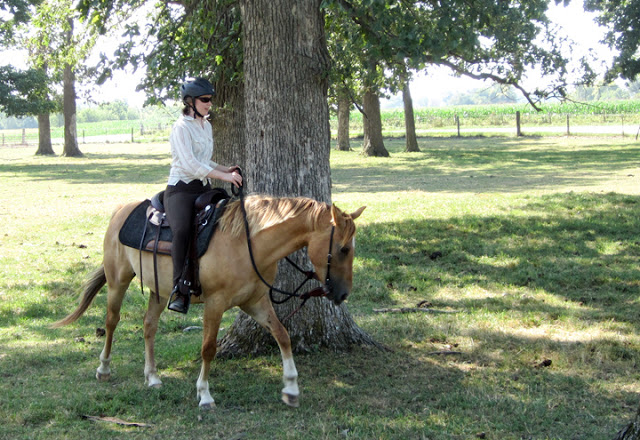 After a few laps around the trees, we had our moment. Laredo started to swing wide, I brought my leg in and tapped his shoulder. I felt him shift his weight and engage his haunches and suddenly he was balanced perfectly to make it through the turn.