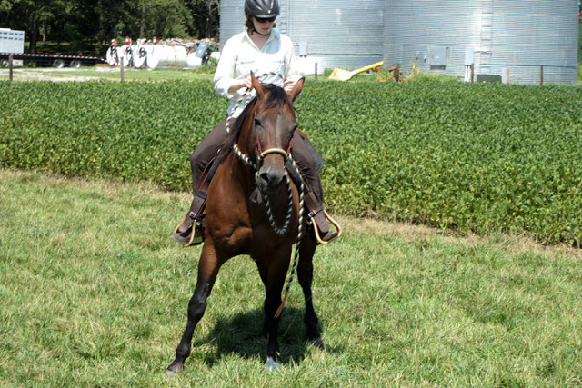 But on the bright side, Bear has made enormous progress since I last rode him. He was unexpectedly soft to the hackamore, and we did a lot of good slow movements, like backing and yielding the forequarters.