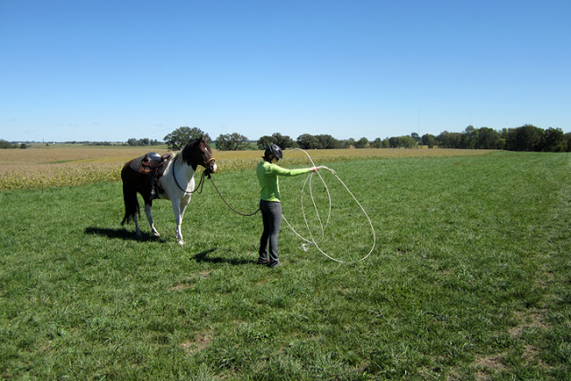It started with me attempting to familiarization myself and Steen with a rope. He was fine with it coiled. I could bang it all around his saddle and body. When I started swinging it around he wasn’t as cool with it, though I couldn’t tell if it was because he was scared of the rope or just embarrassed to be seen with me.