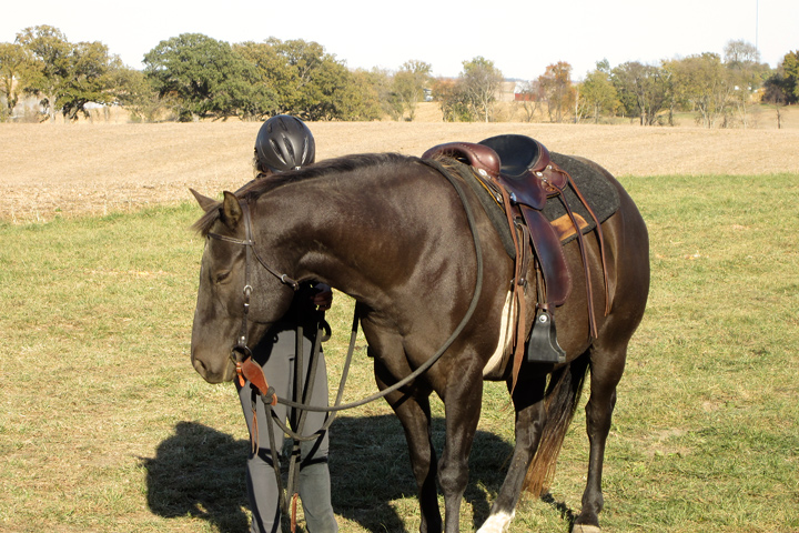 Under saddle, he surprised me. The first ride I was prepared to spend more or less the whole time working on just getting a passable soft feel, but he actually gave to the bit within seconds of me putting pressure on the reins. So after a few flexes and backs, we started off with walking.