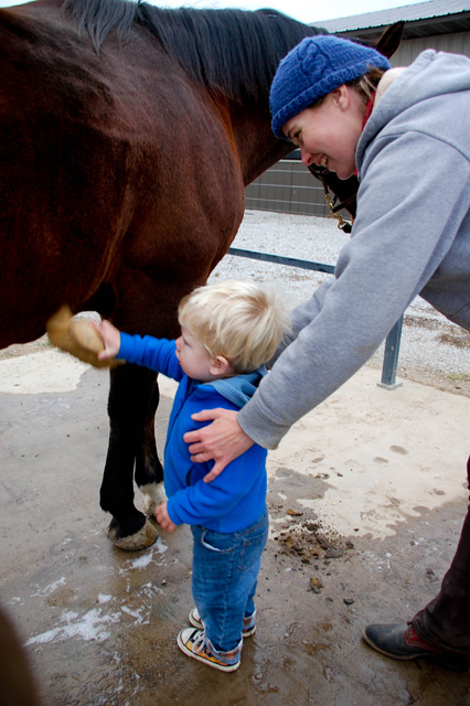 Noah was quite focused on what he wanted. He kept pointing at Bear and saying, “Horse. Ride.” We distracted him by letting him help with the grooming…