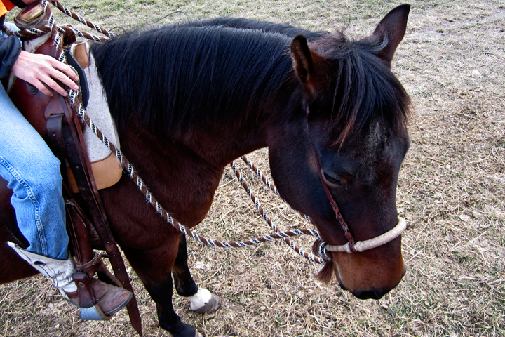 As it was my birthday, I really just felt like riding my own horse, but I also wanted to try out the new rope.  So I just tied it to my bosal so we could see how it looked.