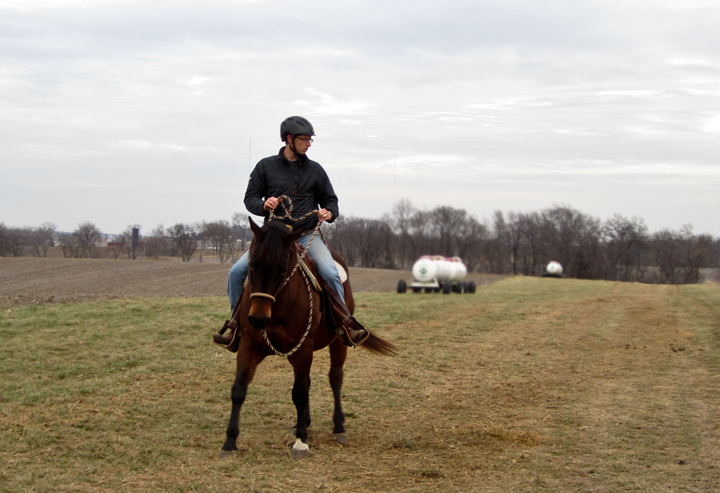 At the end of the ride we ventured over to the second strip for a little while.  Laredo had been munching on the bales, but he noticed our absence and wandered over to the fence to await our return.  He even nickered as we approached.  That kid is so funny, he doesn’t want to work hard when he’s out (or even work lightly), but he can’t stand others exploring without him.