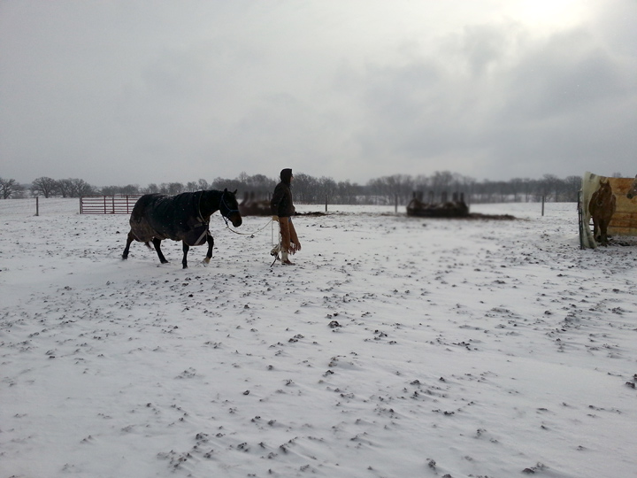 Today we woke up to snow, and it continued to snow throughout the morning. So we just headed out for the barn right away less we lose motivation or get stuck in the afternoon crowds.