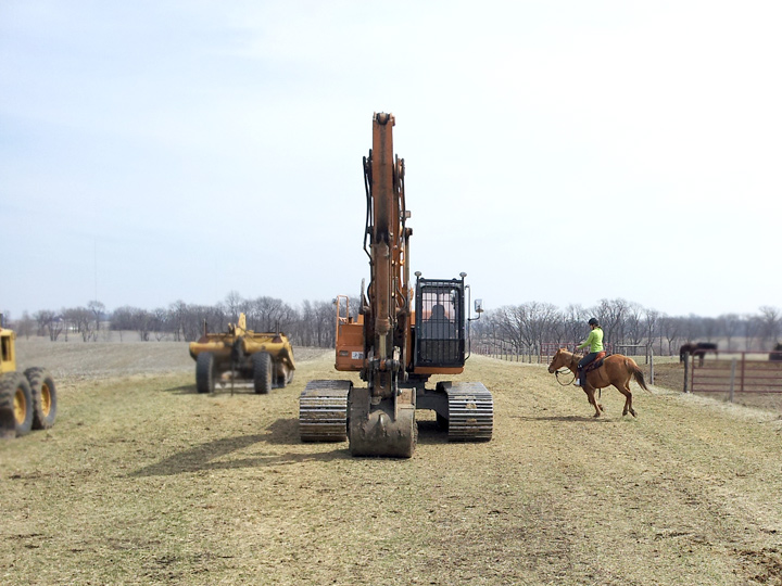 For most of the ride, we just did stuff near the equipment, but after awhile I decided to use it my advantage. I started trotting figure-eights around the two largest pieces of machinery. It was kind of fun to have a real obstacle to work around, and I think it helped Laredo be more interested in the exercise.