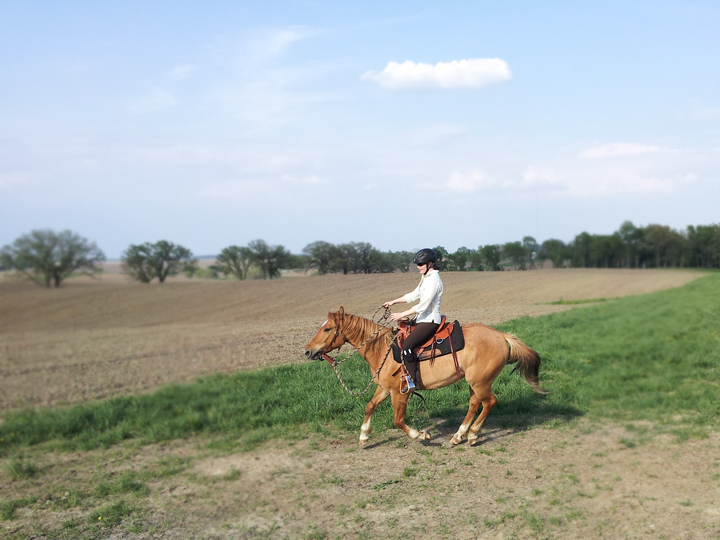 My work with Zoe left me rather worn out, so we didn’t do a whole lot. I mostly worked on little detail stuff, and we had a couple of forays around into the trot and the lope. We worked on leg-yields, too. Historically, Laredo has had trouble with lateral work. His motor dies and he gets stuck and won’t move off your leg. I employed my “you must try something when I ask you for this” mindset, and although it took a few reminders that a leg means move, pretty soon he was at least yielding off my leg at the walk and the trot while maintaining decent forward movement.