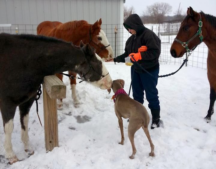 First, we got word that Zoey made it to her new home safely. Her new parents even posted a series of photos on Facebook that showed her meeting her new pasture mates and being fed apples. It looks like she is settling in quite well.