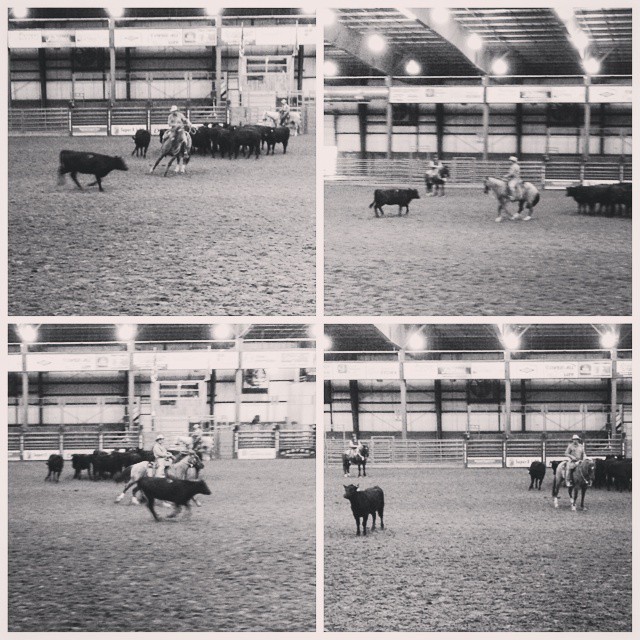 Guapo and Buck playing with cattle.