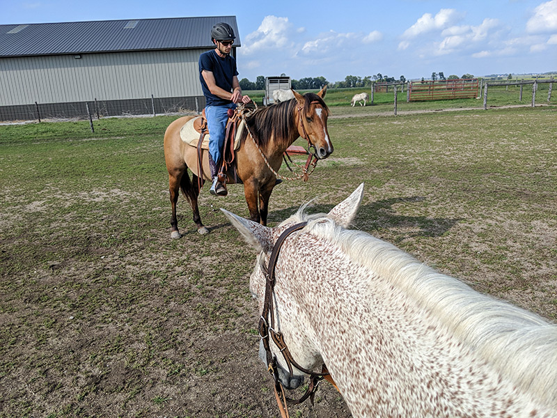 At first, we didn’t hear anything back. Then they told us to check back in a couple of weeks. In a couple of weeks, we saw a 4-year-old gelding pop up on their Facebook page. We called immediately and drove up a day or two later. We even took our student with us. All three of us rode the candidate. It wasn’t a hard decision to buy this horse.