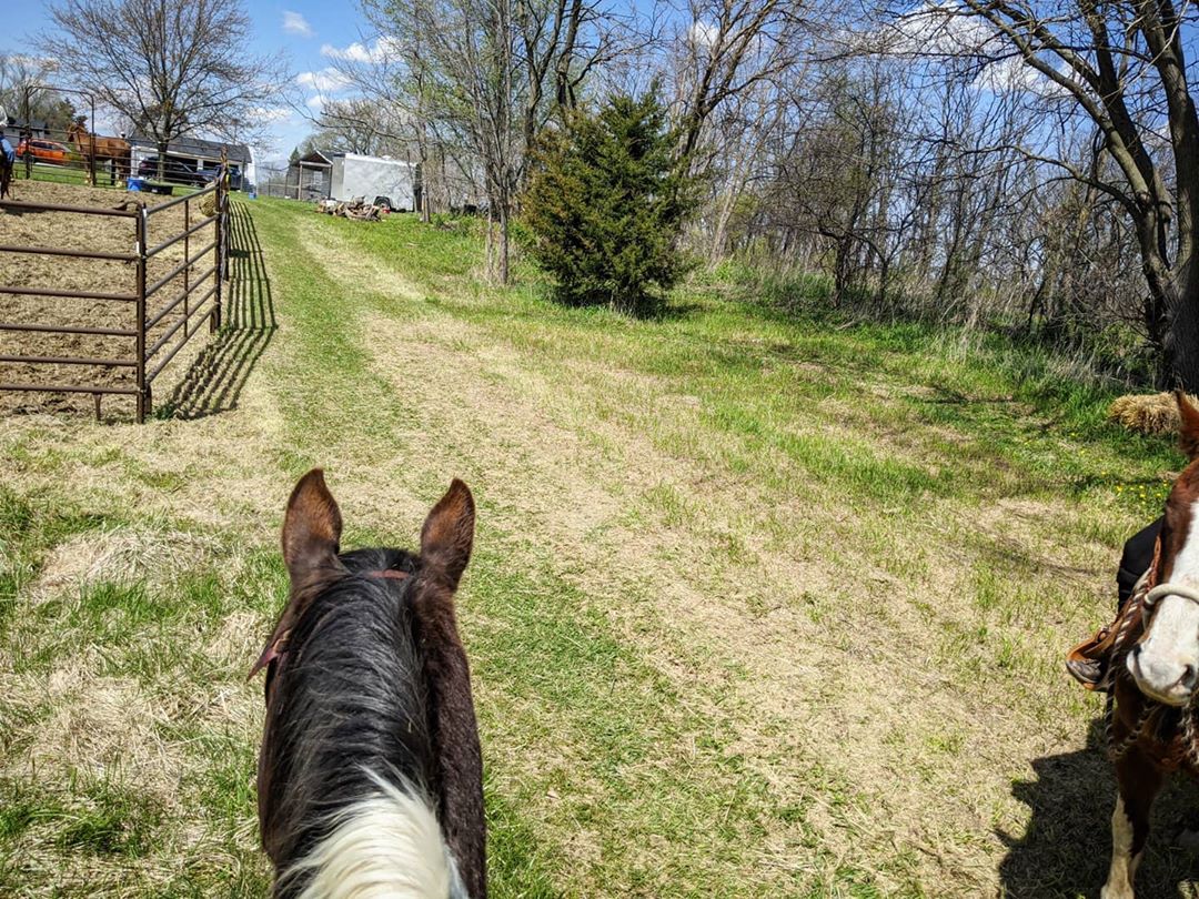 Celebrating twelve years with my boy Steen today. We marked it by escorting Arlo around on his first lap around the field, testing new canter zones, and extra time grazing after our ride. #newhorizons #sunnydays #steenpaint