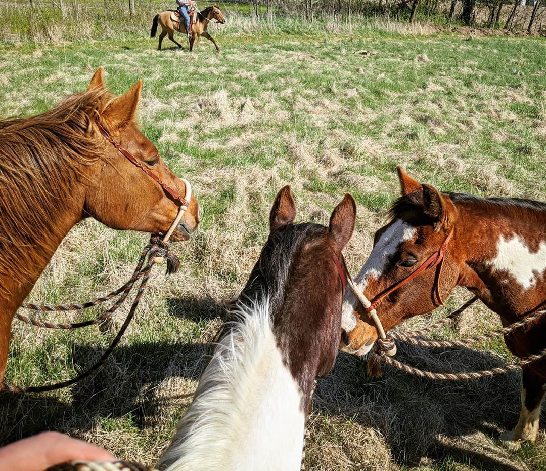 Hackamore club breaks for gossip while Fitz trots on. #puregoodness #redredrosa #steenpaint