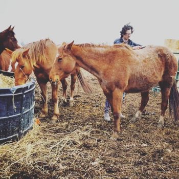 Brian conducting a little guerella grooming in the pasture. The tufts of blowing hair didn’t show up in the photo. • • View on Instagram ⇒