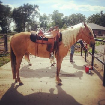 Loretta (my student’s horse) is not totally confident she looks good in my gear. View on Instagram ⇒